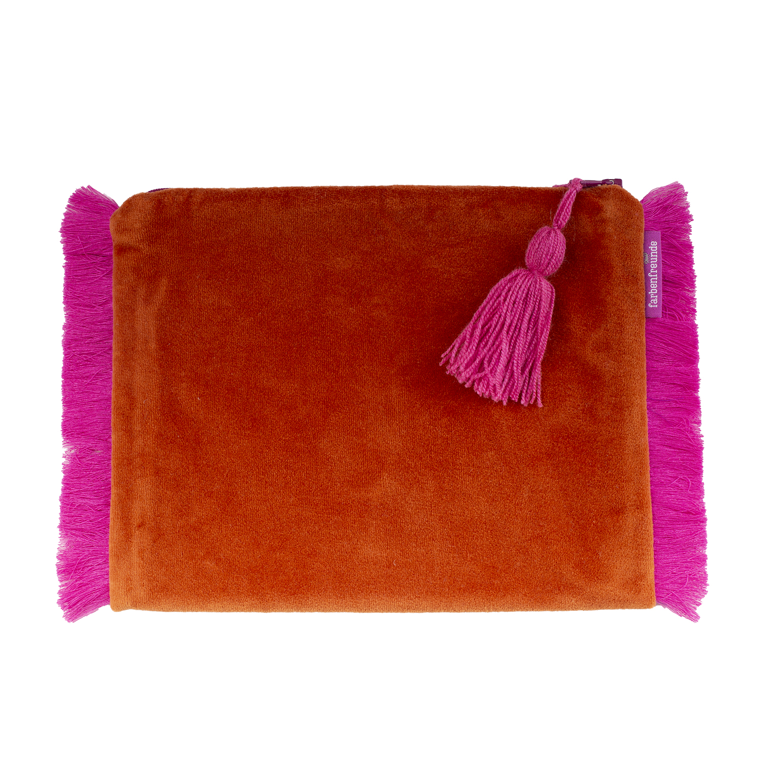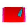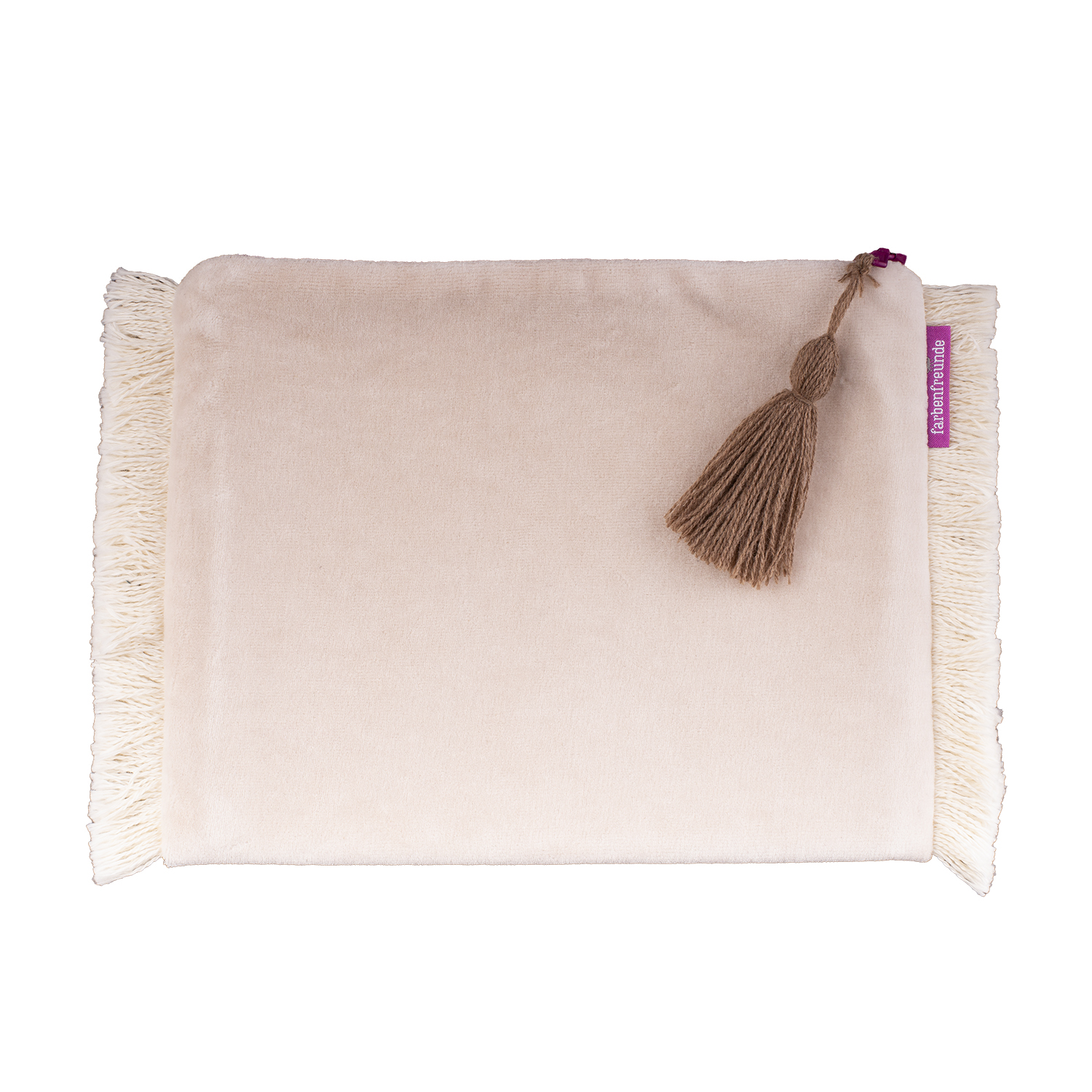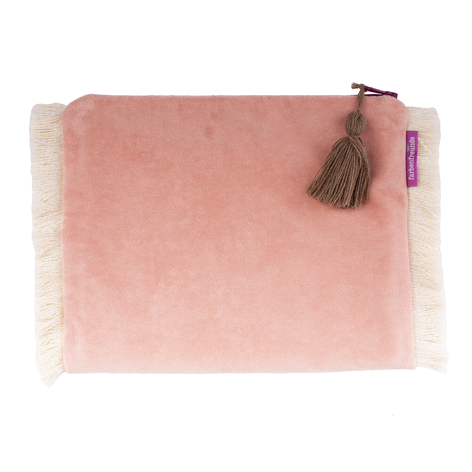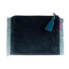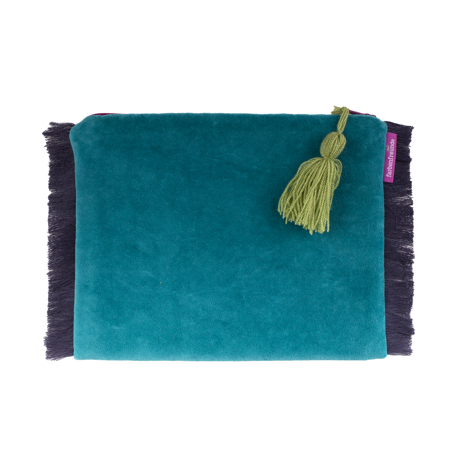Die Tasche ist außen aus weichem Nicky und innen mit schwarzen stabilen Kanvas gearbeitet. Besondere Akzente setzt die farbige Fransen Bordüre und eine Troddel in Kontrast Farbe.