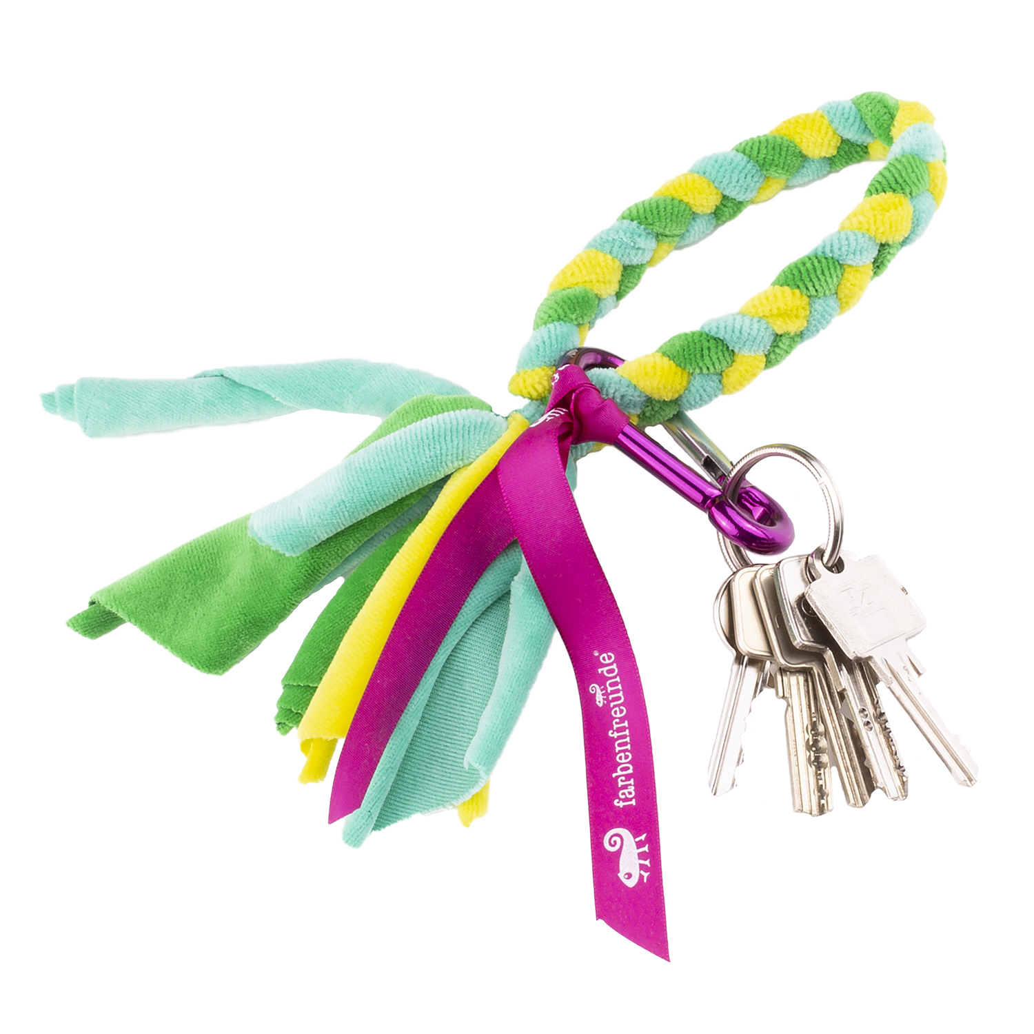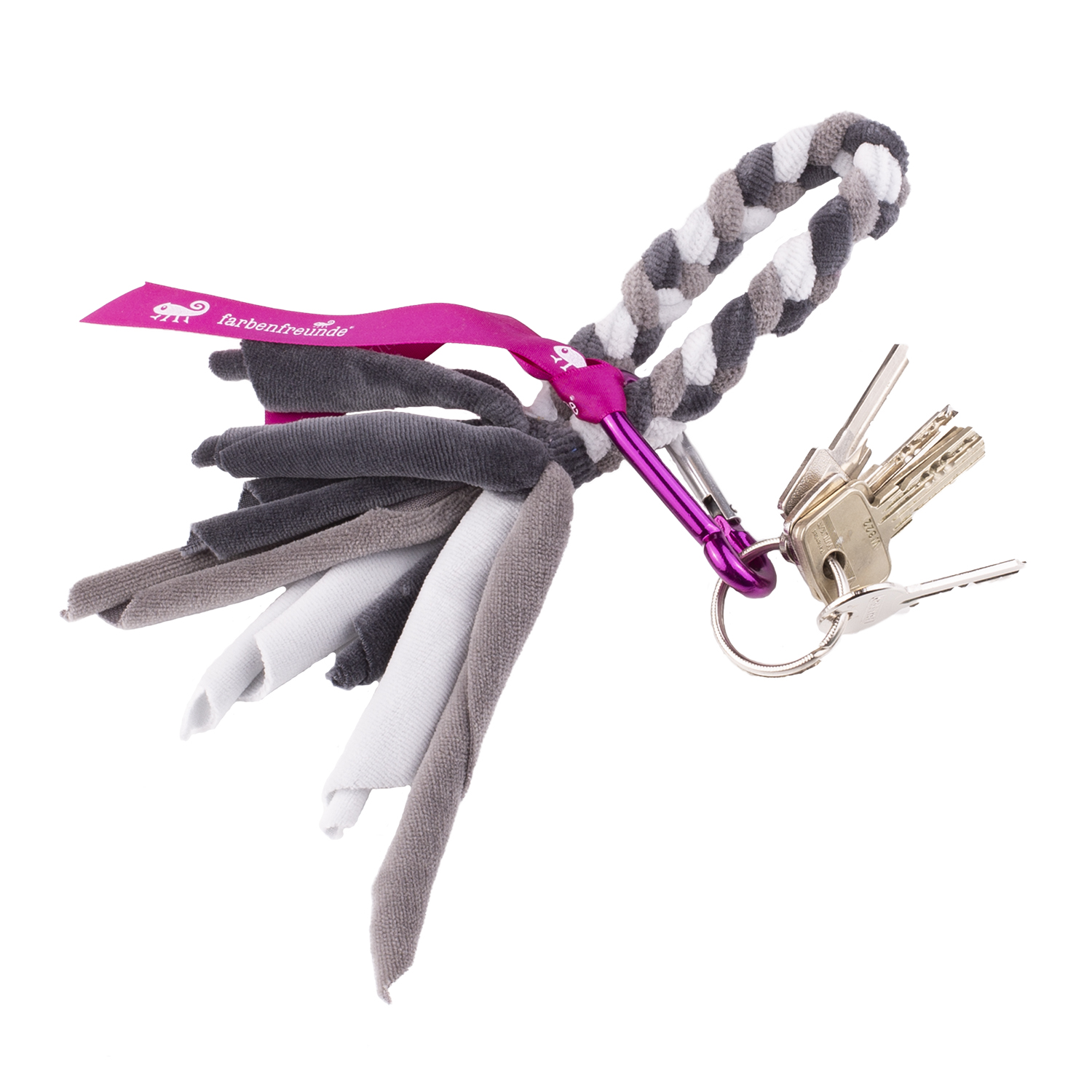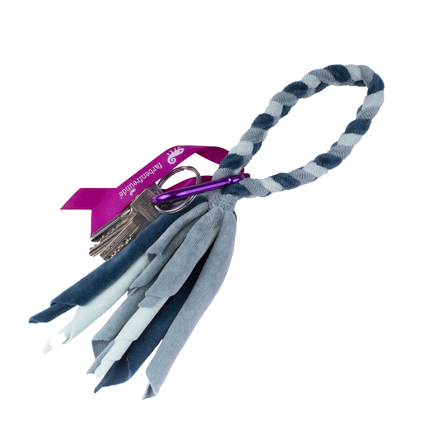 Wie oft haben Sie schon in den Untiefen Ihrer Tasche nach Ihrem Schlüsselbund gekramt? Mit unserer farbenfrohen Schlüsselbund-Kette mit praktischem Metallkarabiner hat die Suche ein Ende. Der hohen Baumwollanteil macht den Nickystoff so angenehm weich, dass Sie die Kette sogar bequem ums Handgelenk tragen können. Definitiv ein praktischer Artikel mit einer stylischen Note.