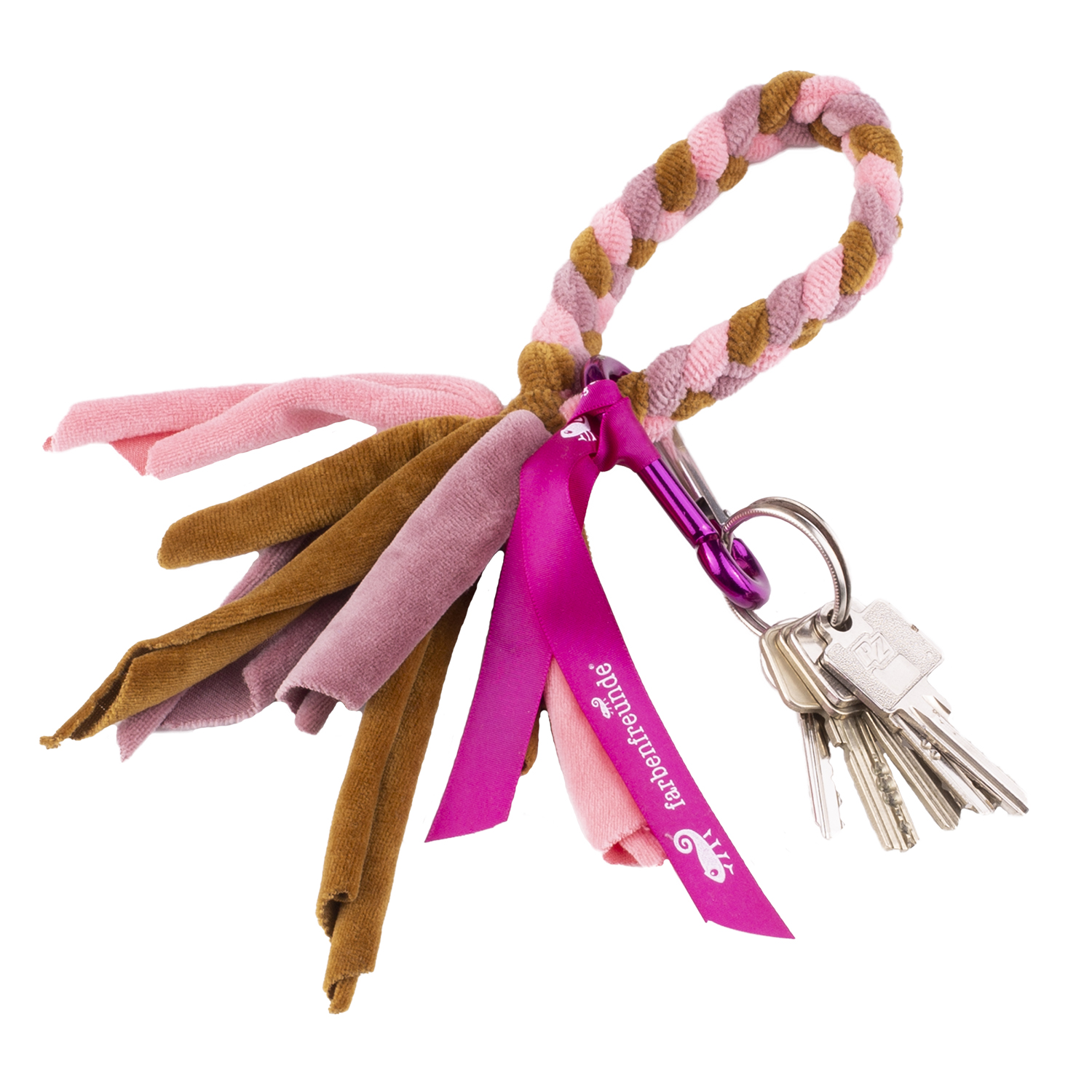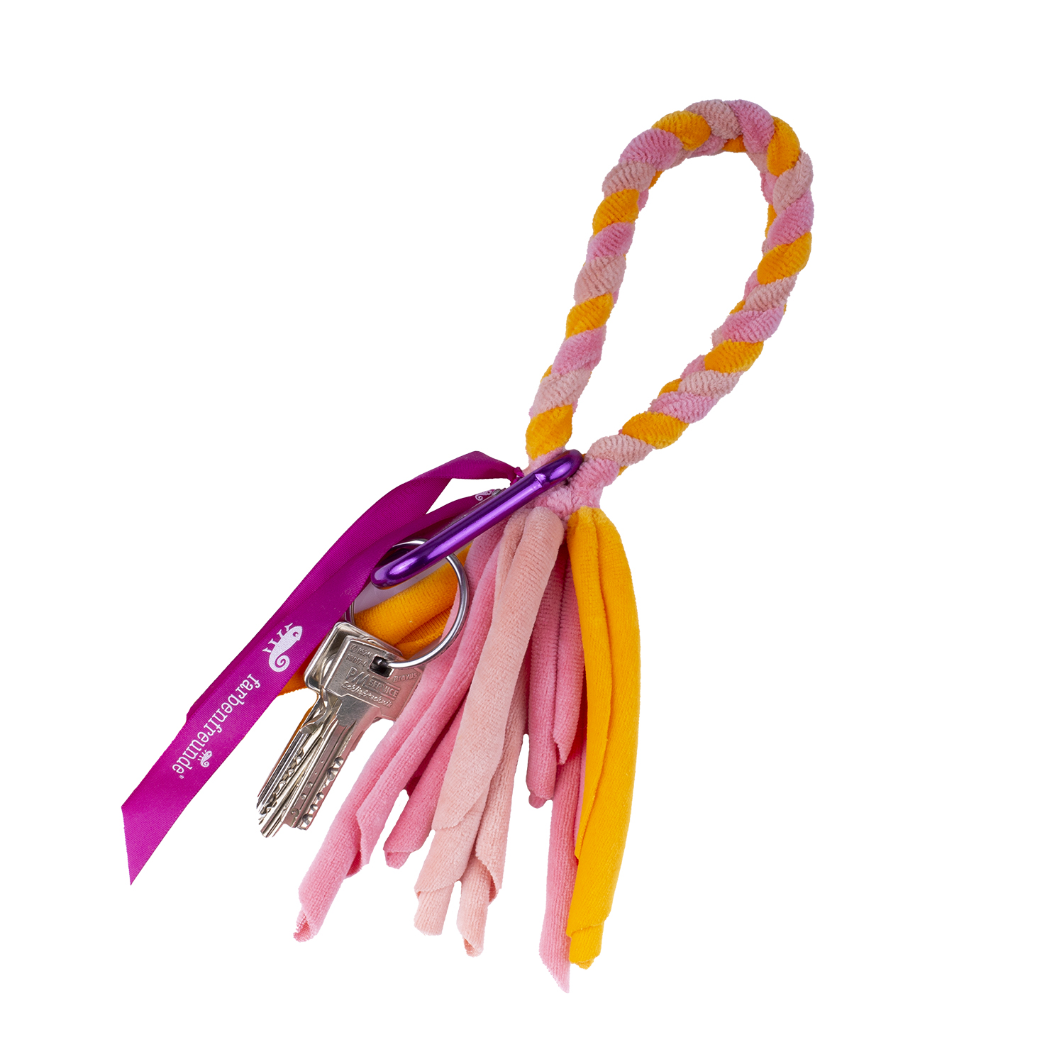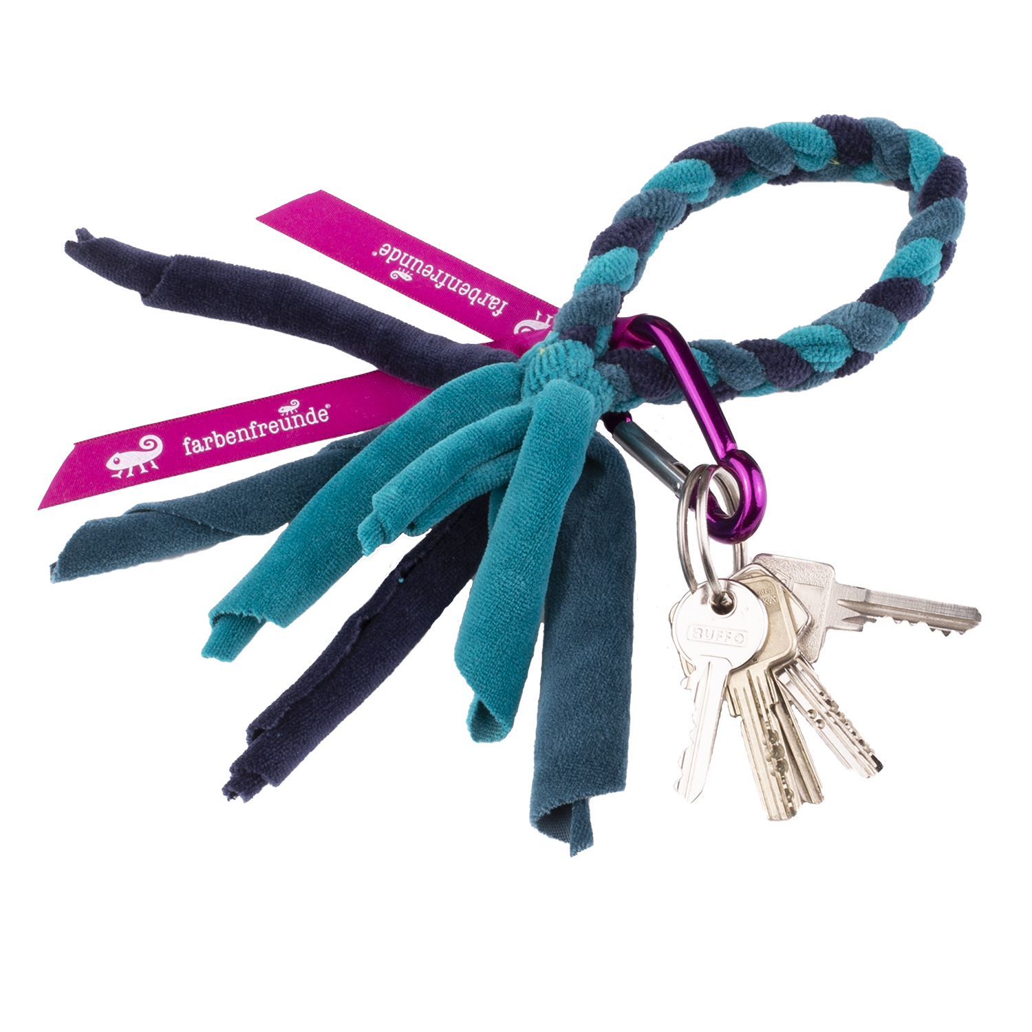 Wie oft haben Sie schon in den Untiefen Ihrer Tasche nach Ihrem Schlüsselbund gekramt? Mit unserer farbenfrohen Schlüsselbund-Kette mit praktischem Metallkarabiner hat die Suche ein Ende. Der hohen Baumwollanteil macht den Nickystoff so angenehm weich, dass Sie die Kette sogar bequem ums Handgelenk tragen können. Definitiv ein praktischer Artikel mit einer stylischen Note.