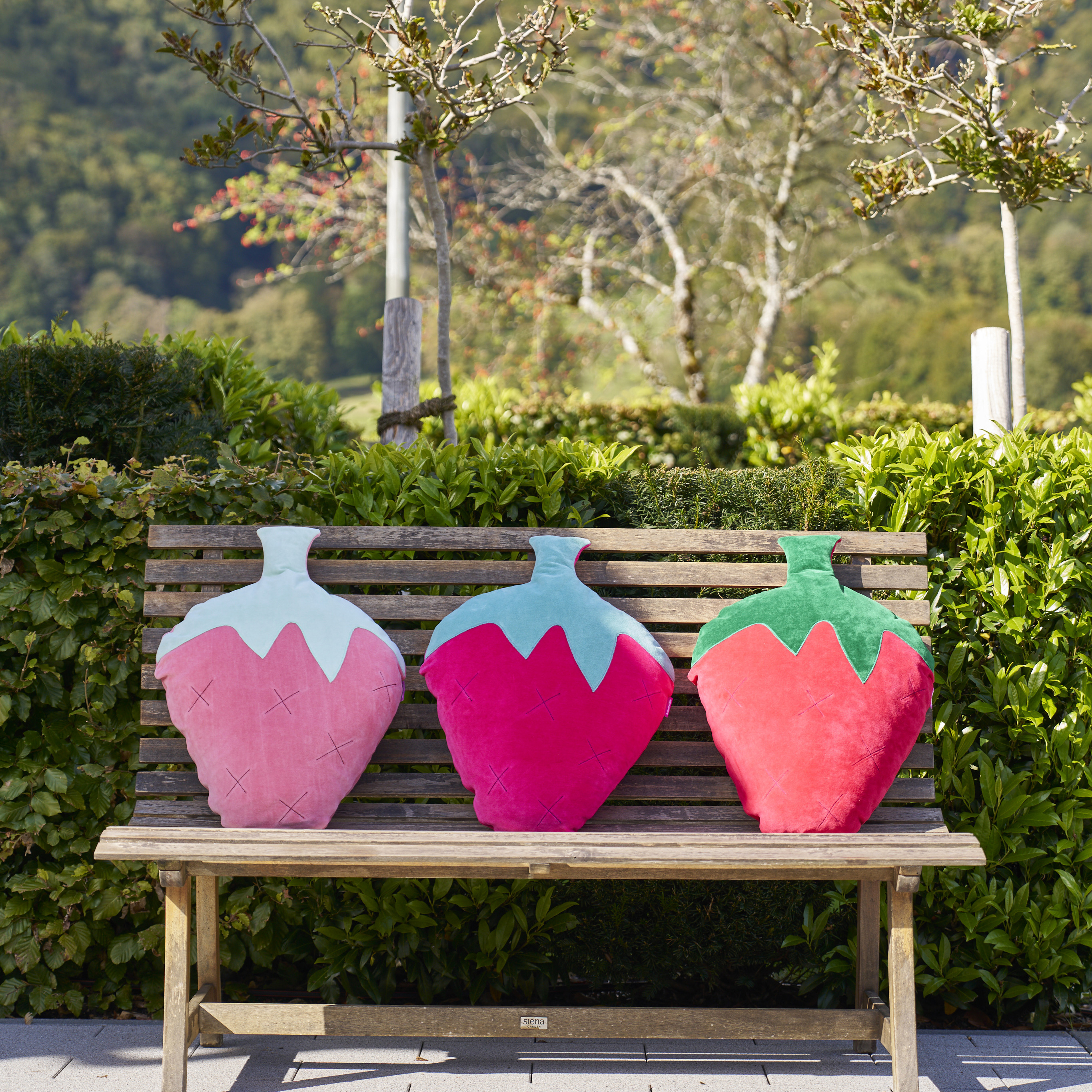 Aus der Serie Elements of Culture bietet Ihnen Farbenfreunde dieses "Früchtchen" in Form eines Erdbeerkissen an. Erbeeren stehen im Volksglauben für Sinnlichkeit oder Verlockung zur Sünde. Wir finden, diese Erdbeere ist eine Sünde wert. Aber auch ohne dieses Wissen ist es einfach ein toller ingucker auf dem Sofa oder auf dem Bett. Erhältlich in drei Farbvarianten. Die Kissenhülle hat einen nahtverdeckten Reißverschluss in Logo Farbe fuchsia und lässt sich unkompliziert abziehen und waschen. Einzigartig ist, dass das Inlett für die Kissenfüllung ebenfalls sehr aufwendig genäht wurde. Gefüllt ist das Inlett vegan mit silikonisierter Hohlfaser.