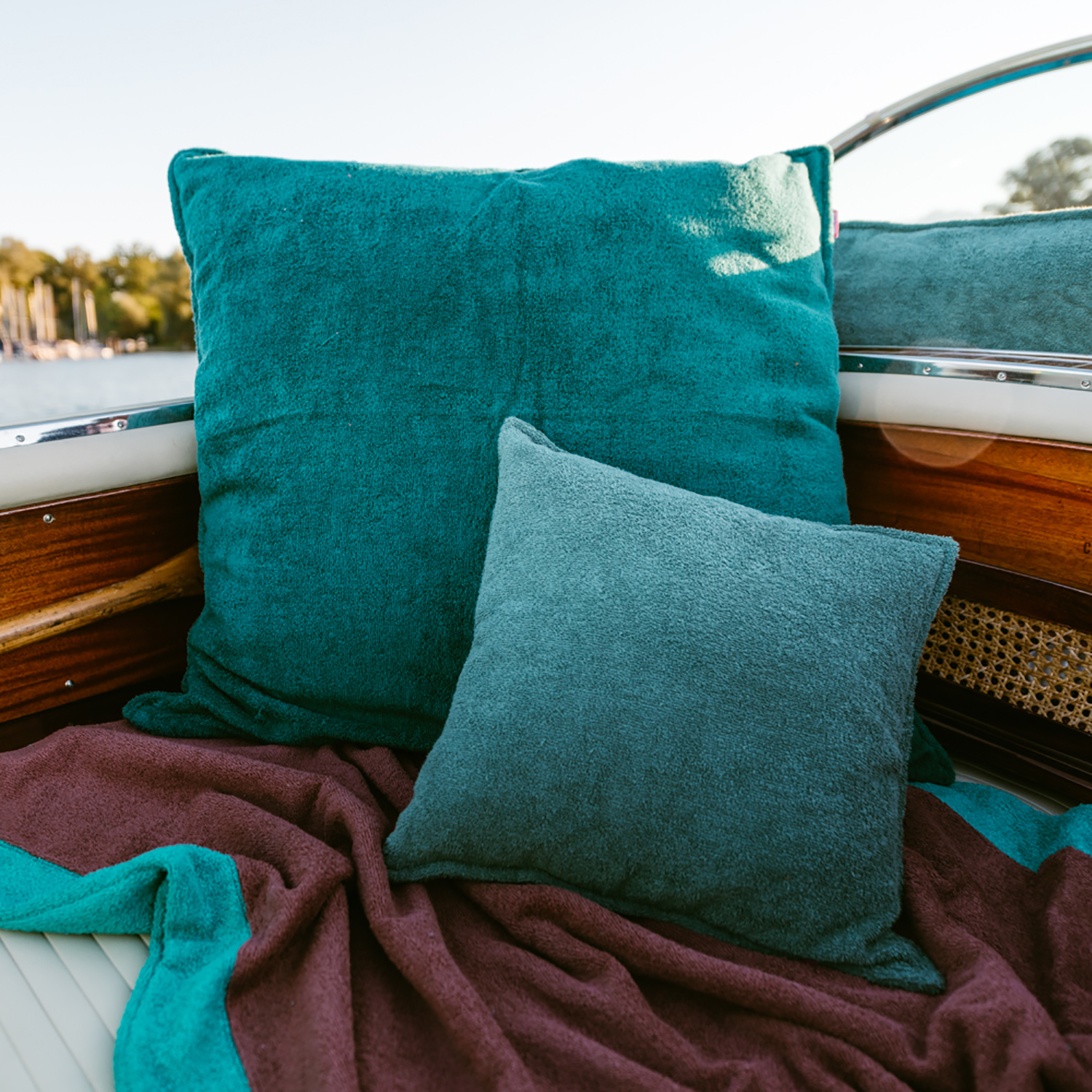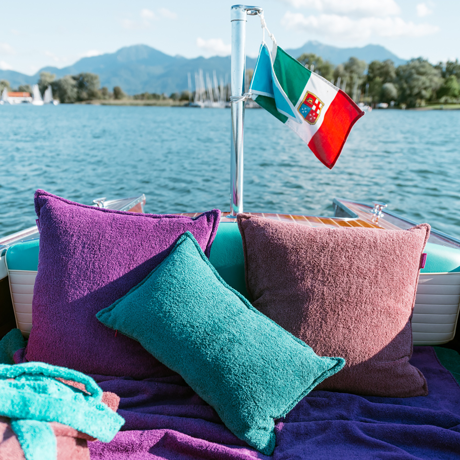 Wir lieben Frottee! Der Stoff besteht zu 100% aus Baumwolle. Dadurch ist er besonders hautfreundlich bietet einen hohen Tragekomfort. Ein weiterer Pluspunkt für dieses Material ist, dass es so wunderbar pflegeleicht ist. Unsere Frottee-Produkte können bei 30 Grad in der Maschine gewaschen werden und danach in den Trockner. Unsere Erfahrung zeigt, dass das Material selbst nachzahlreichen Wasch- und Trocknergängen noch genauso schön ist, wie am ersten Tag. Da unser Frottee vor der ersten Wäsche nicht schlingenfest ist, kann es passieren, dass sich im Kontakt mit Gegenständen (z.B. Schmuck) ein Faden zieht. In diesem Fall ziehen Sie den Faden bitte nicht weiter, sondern schneiden Sie ihn einfach ab. Mit der nächsten Wäsche wird der Faden sicher versiegelt. Wie alle Naturmaterialien ist auch Frottee nur bedingt lichtecht (Lichtechtheit: Stufe 4). Wenn Sie Kissen, Taschen oder Handtücher direktem Sonnenlicht (dies gilt auch für Fenster) aussetzen, tun Sie dies in dem Wissen, dass die Farben verblassen. Die Farbveränderung gibt den Produktenaber oft eine Vintage-Note, was äußerst charmant sein kann. Kleiner Tipp: wenn Sie die Kissen regelmäßig drehen, verändern sich die Farben gleichmäßig.